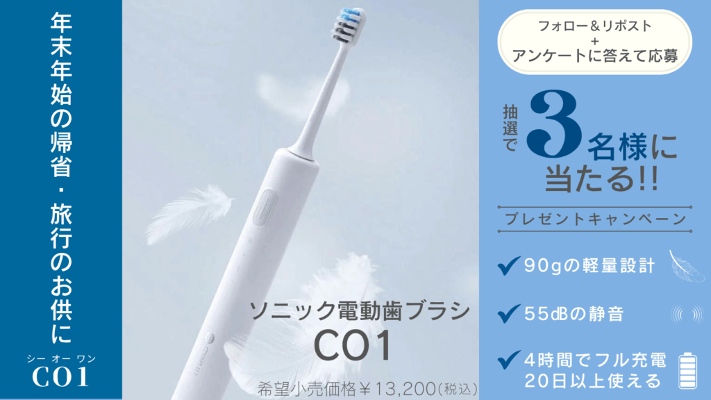 11月は電動ソニック歯ブラシ『CO1(シーオーワン)』のプレゼントキャンペーン実施が決定しました。